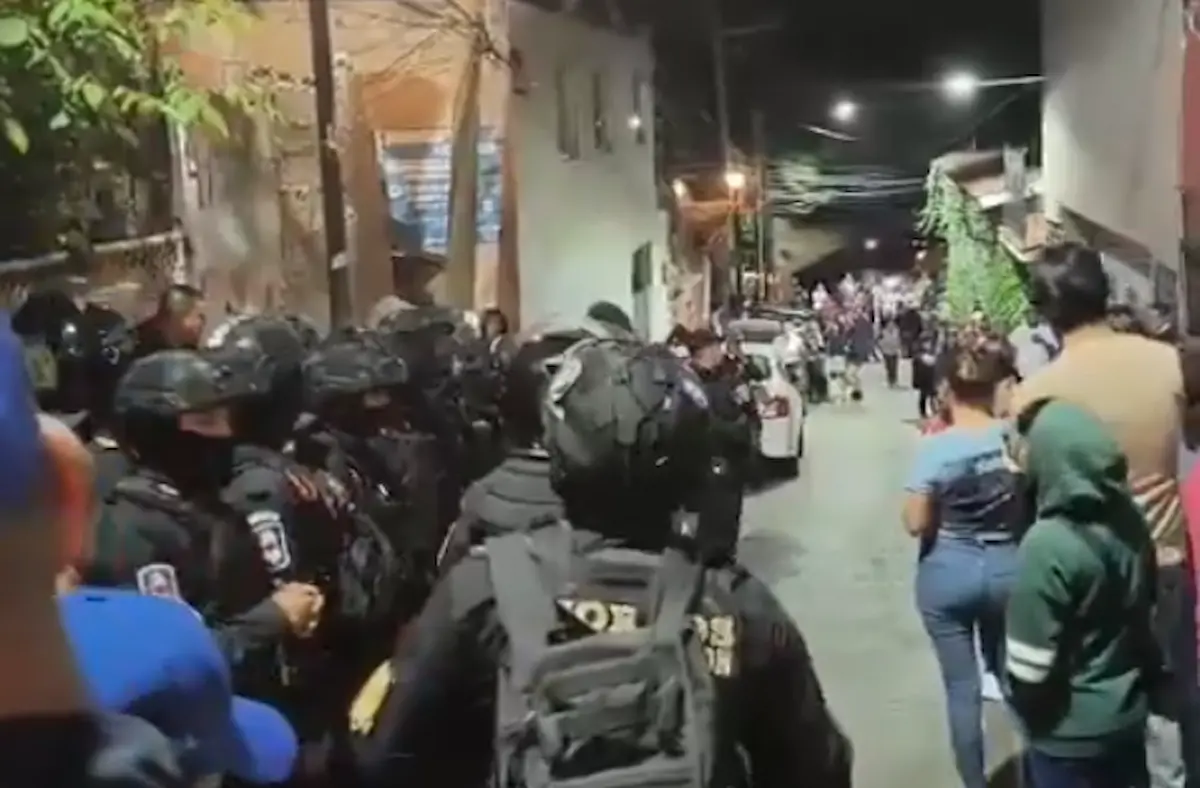 Los uniformados iniciaron labores de diálogo con los pobladores, mientras otros elementos resguardaban la zona con equipo táctico para evitar que la violencia escalara.