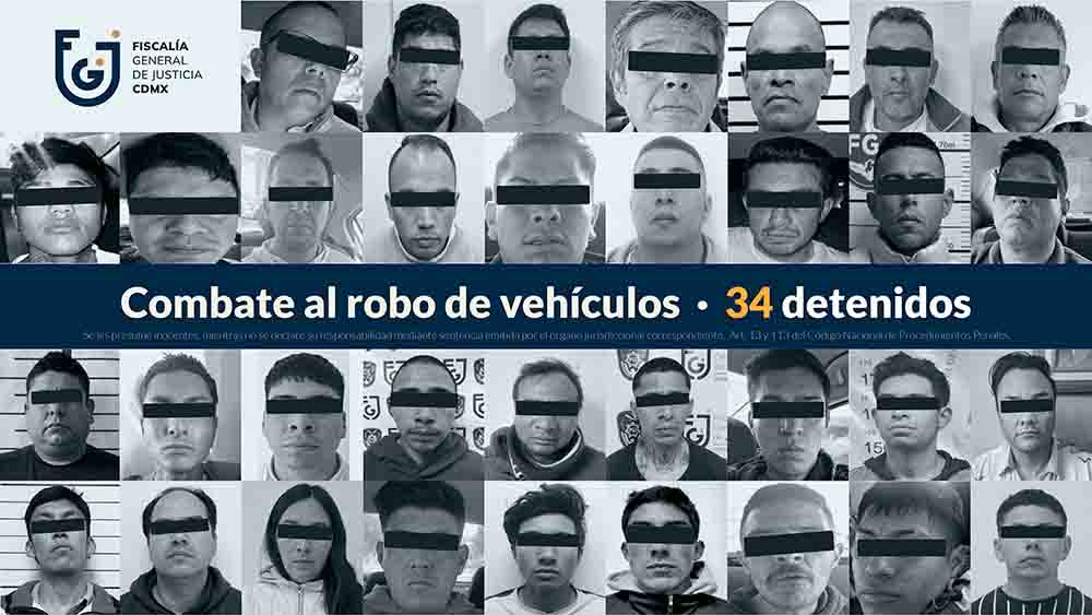 En ese mismo periodo se ejecutaron 63 órdenes de aprehensión, lo que representa un incremento del 46%. Solo en febrero, 34 personas fueron llevadas ante la justicia por delitos relacionados con robo de vehículos en al menos 12 alcaldías.